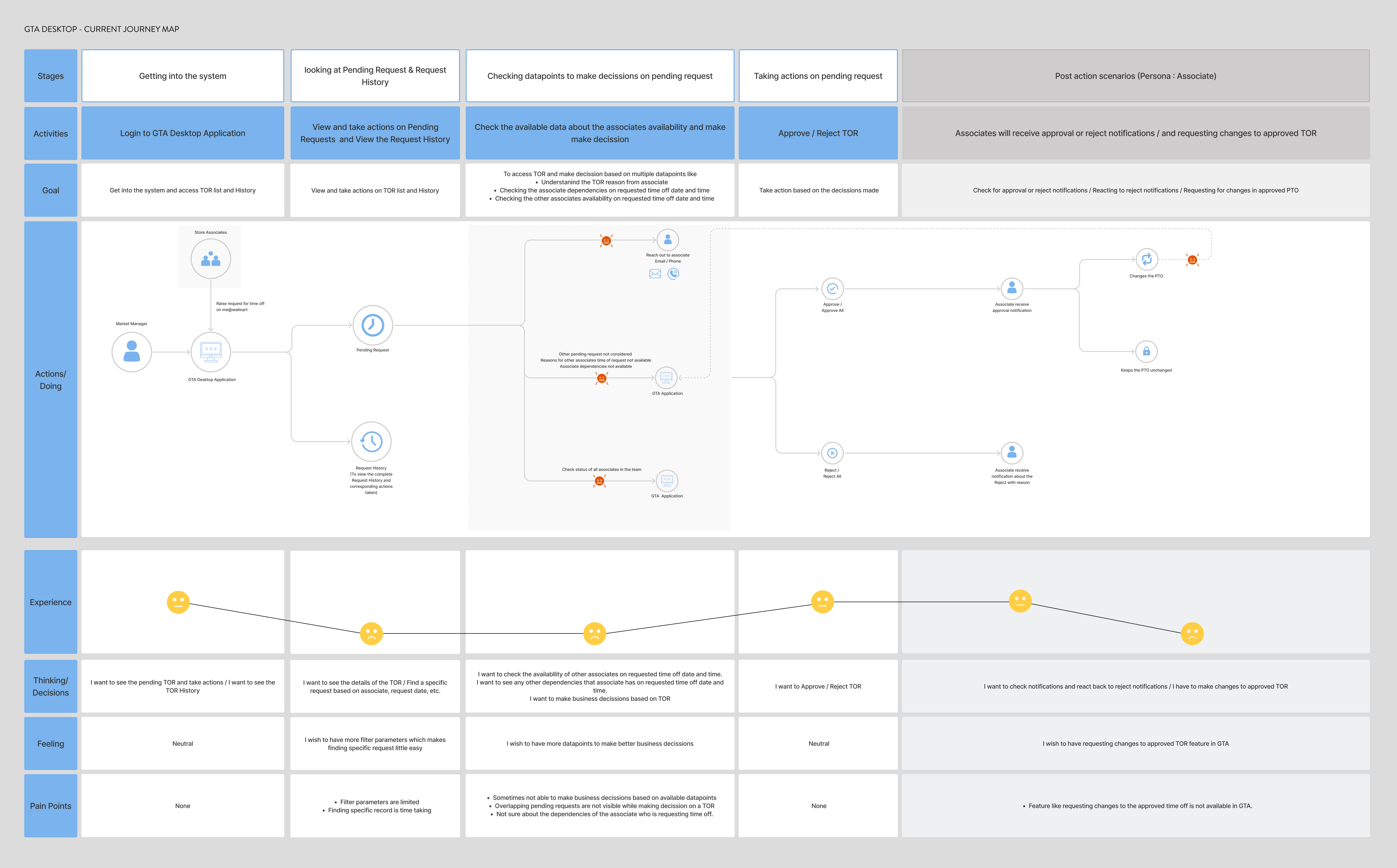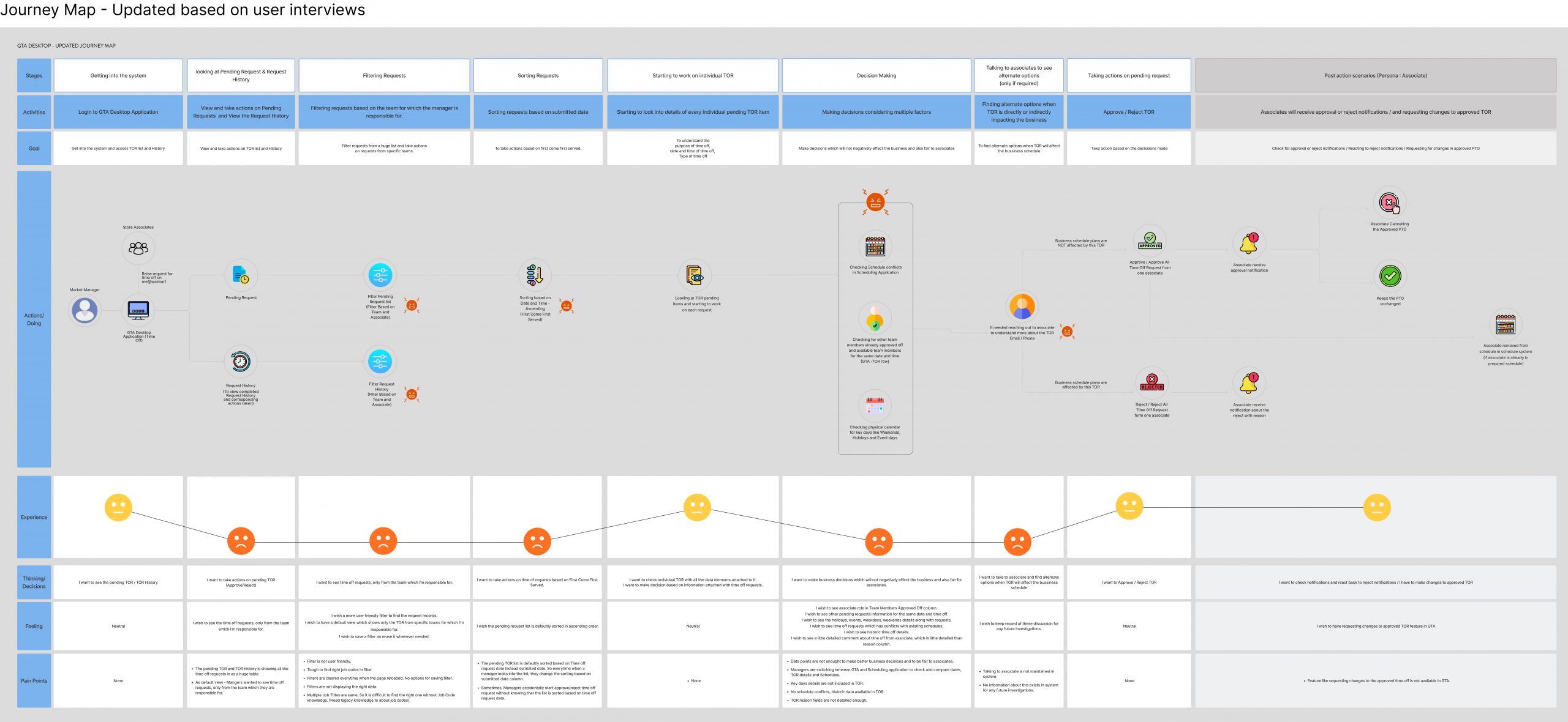 Open-ended Interviews: We conducted in-depth interviews with 10 associates from diverse backgrounds. These conversations became a treasure trove, revealing frustrations with the manual workload, the lack of transparency in the approval process, and the pressure of handling last-minute requests.