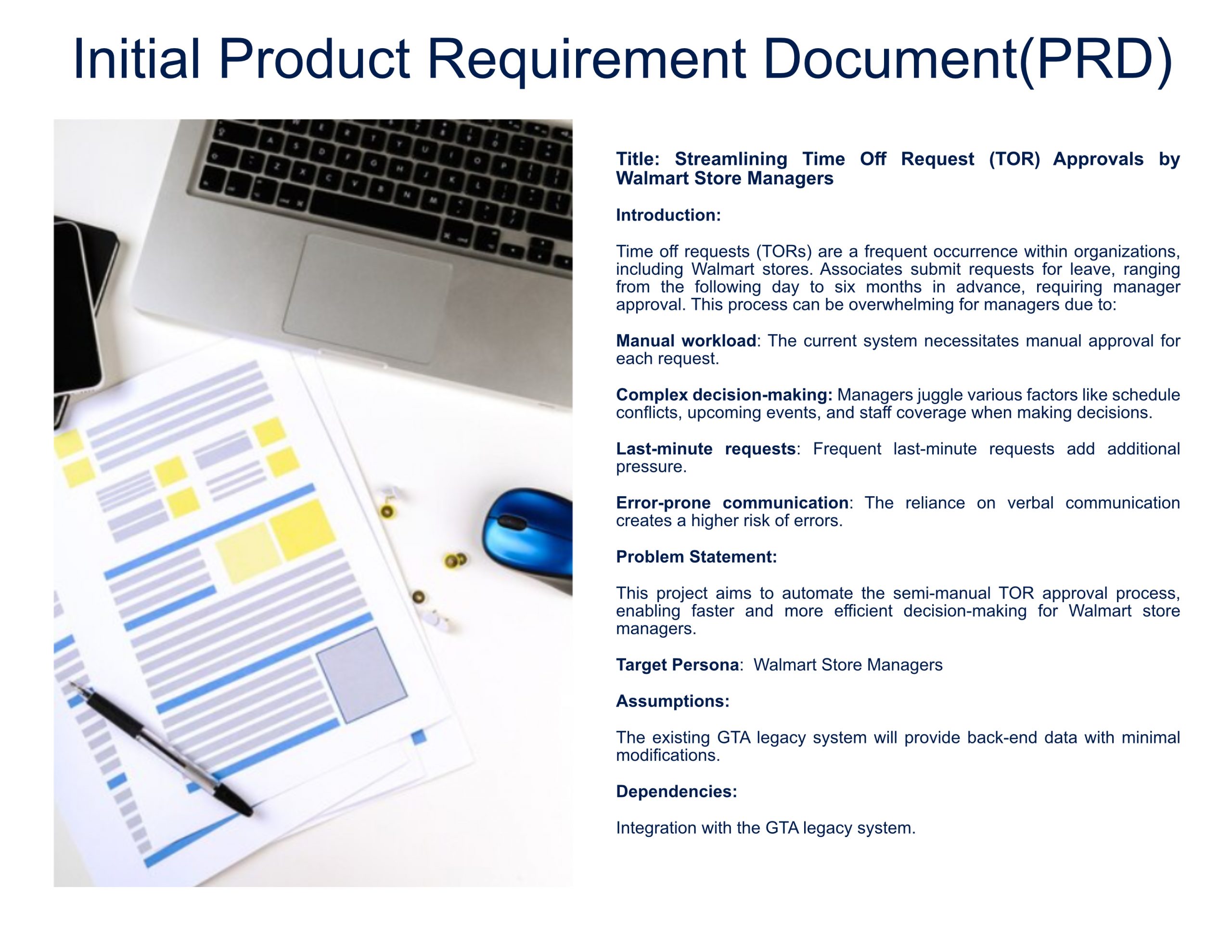 Time-off requests (TORs) are a routine part of any organization, but in fast-paced retail environments like Walmart stores, managing them can be a significant challenge. Associates submit requests ranging from the next day to six months in advance, requiring approval from store managers.